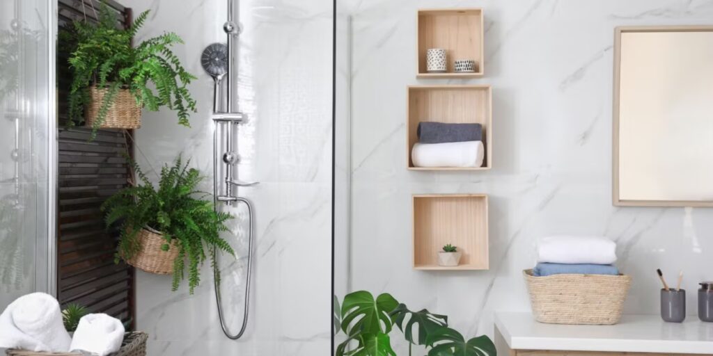 Die Feuchtigkeit beim Duschen kommt den Pflanzen zugute, so dass sie mit minimalem Aufwand gedeihen.