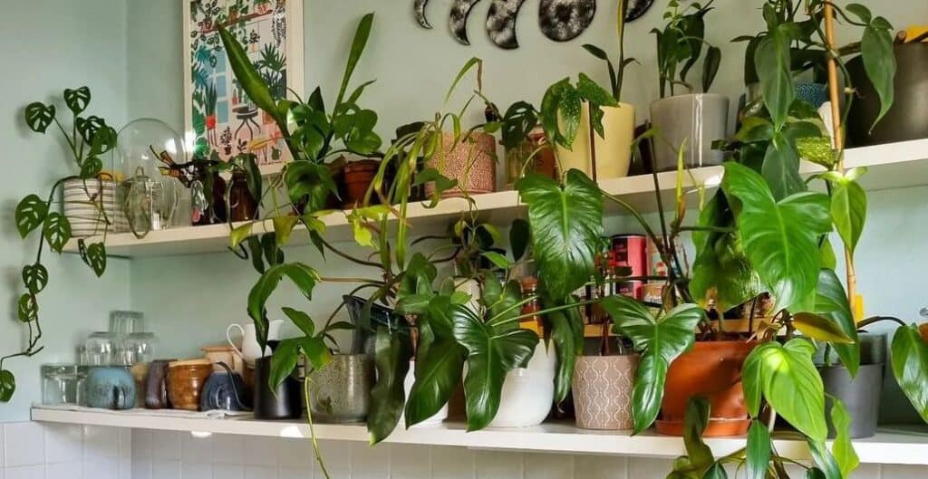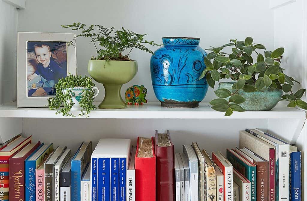 Verwandeln Sie Ihr Bücherregal in einen lebendigen Dschungel, indem Sie Ihre Literatursammlung mit üppigem Grün durchsetzen.