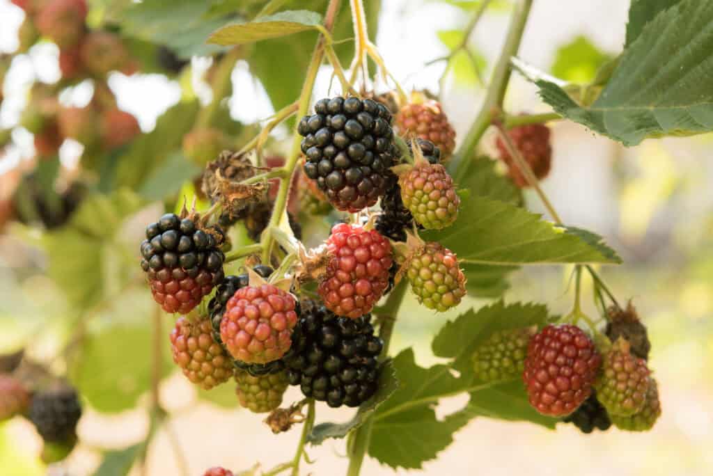 Brombeeren sind widerstandsfähige, ertragreiche Reben, die in verschiedenen Klimazonen gedeihen, von gemäßigten bis zu kühleren Regionen.
