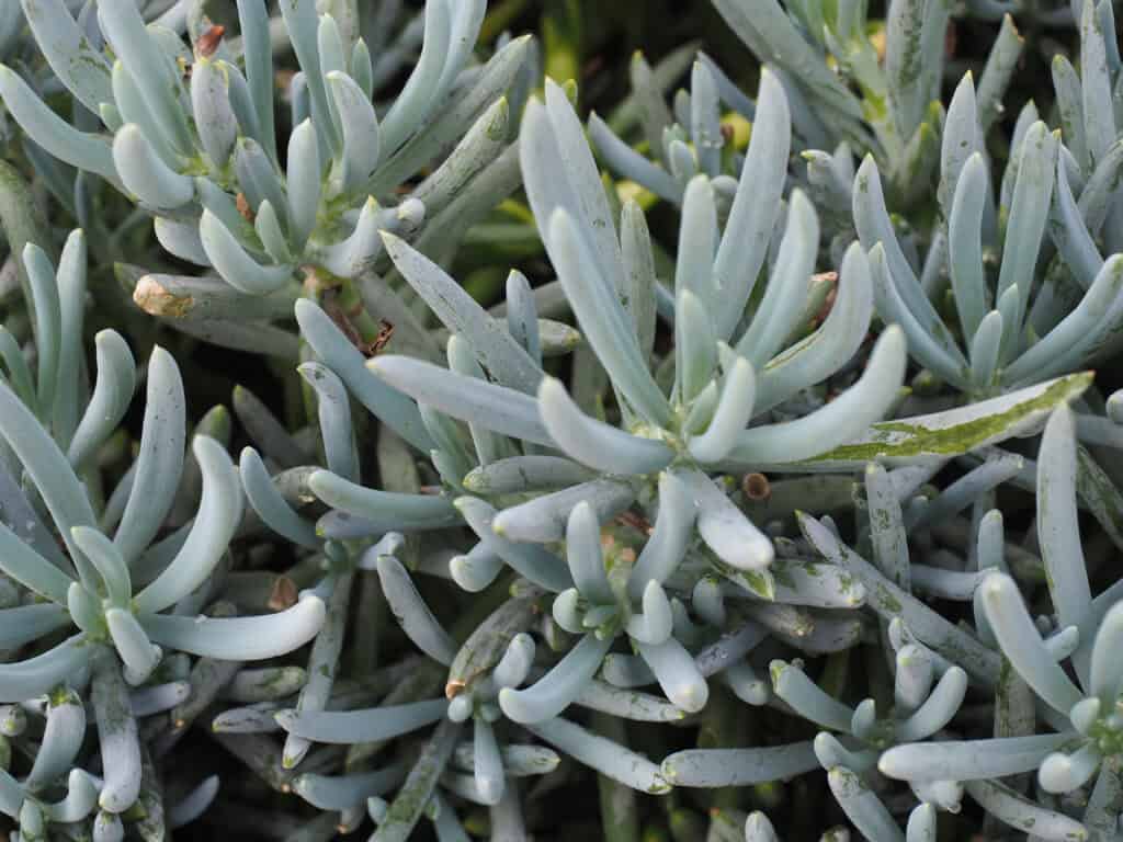 Blue Chalksticks oder Senecio serpens sind an ihren länglichen, blaugrauen Blättern zu erkennen, die einen auffälligen Anblick bieten.