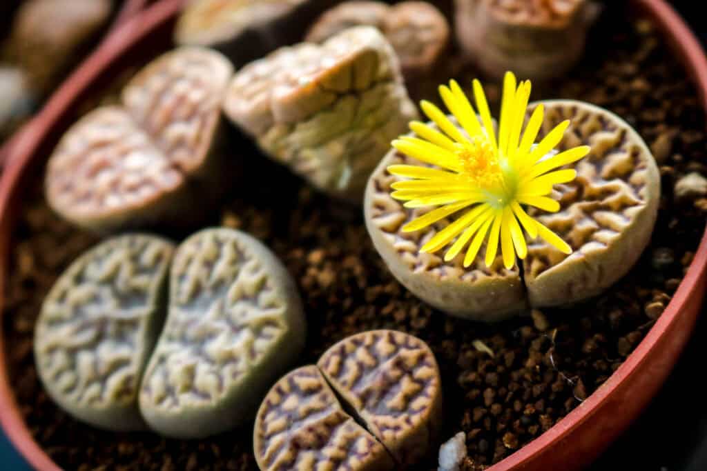 Dank ihres ungewöhnlichen Aussehens und ihres geringen Pflegebedarfs eignen sich Lithops perfekt für alle, die ohne große Pflege etwas Besonderes schaffen wollen.