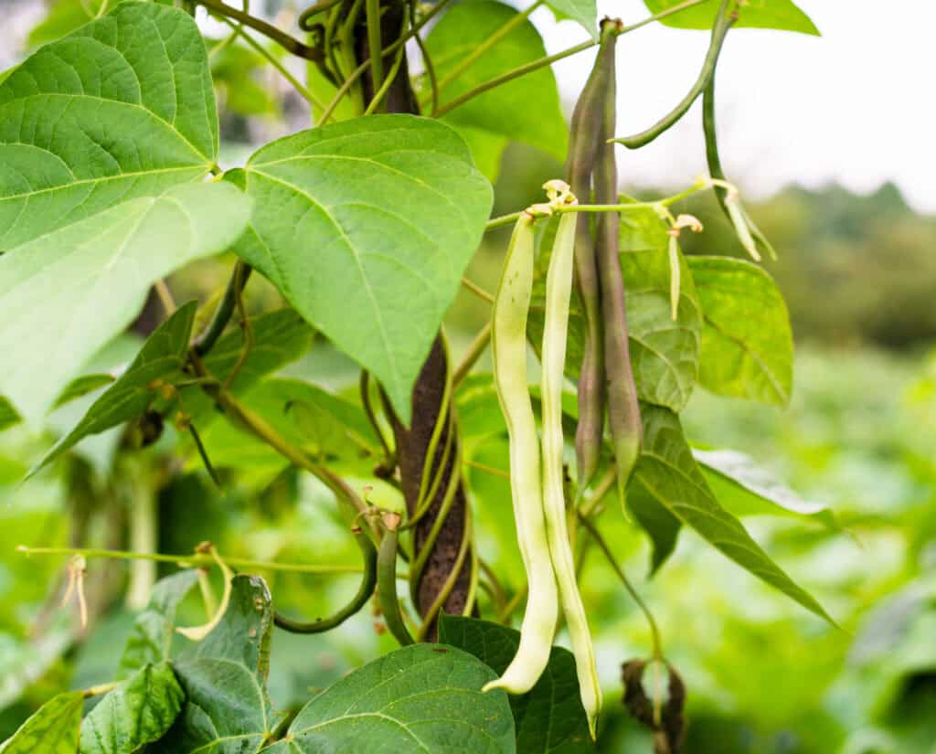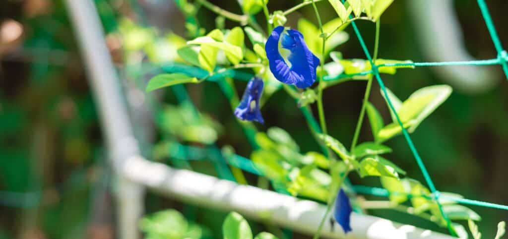 Befestigen Sie das Spalier im Boden und führen Sie Ihre Kletterpflanzen wie Bohnen, Gurken oder Rosen daran hoch und um es herum.