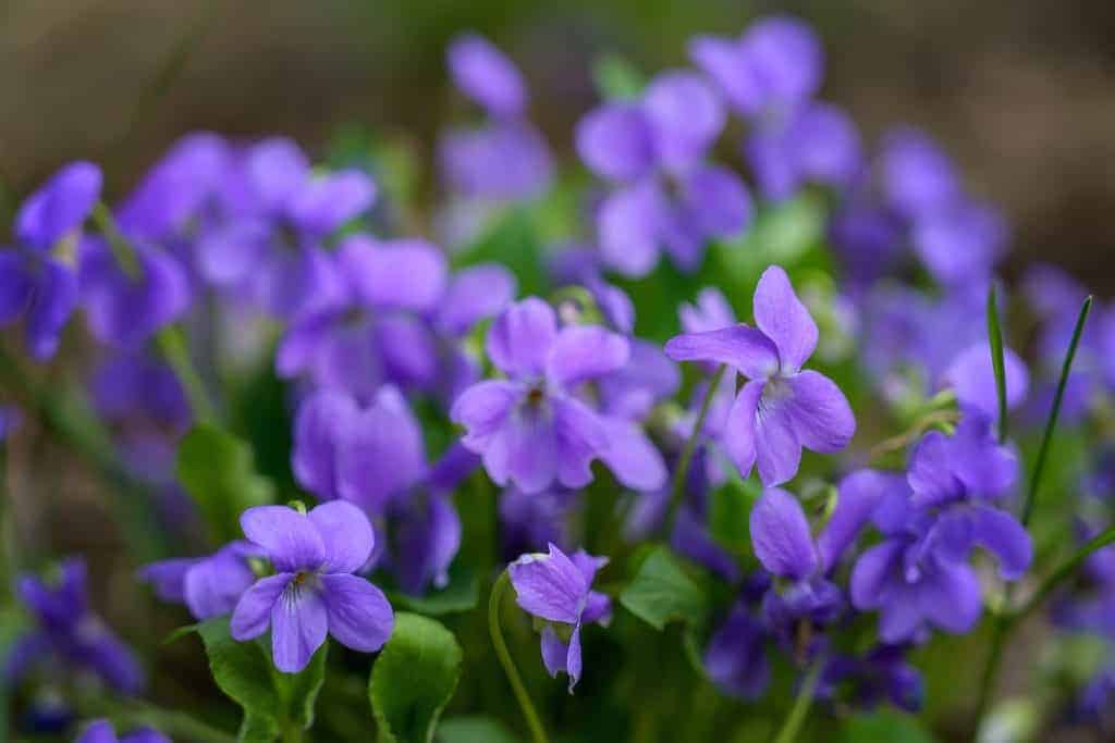 Veilchen mit ihren bezaubernden tiefvioletten Blüten und herzförmigen Blättern sind eine reizvolle Bereicherung für jede Frühlingslandschaft.