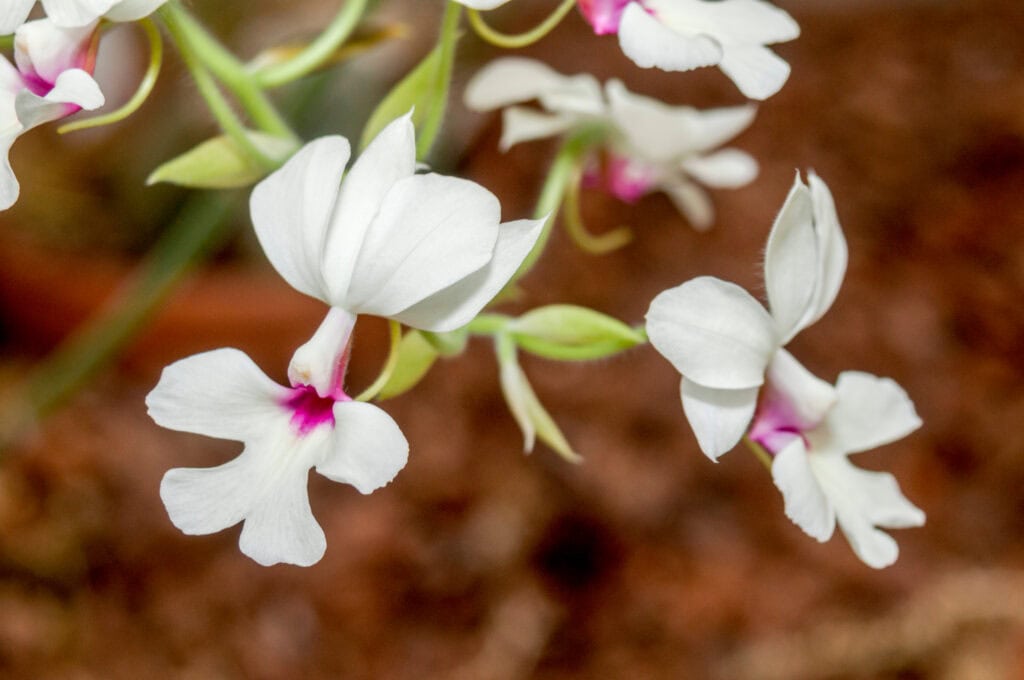 Die echten Blüten sind kleine, zarte Blüten in zartrosa, weißen oder lavendelfarbenen Tönen.