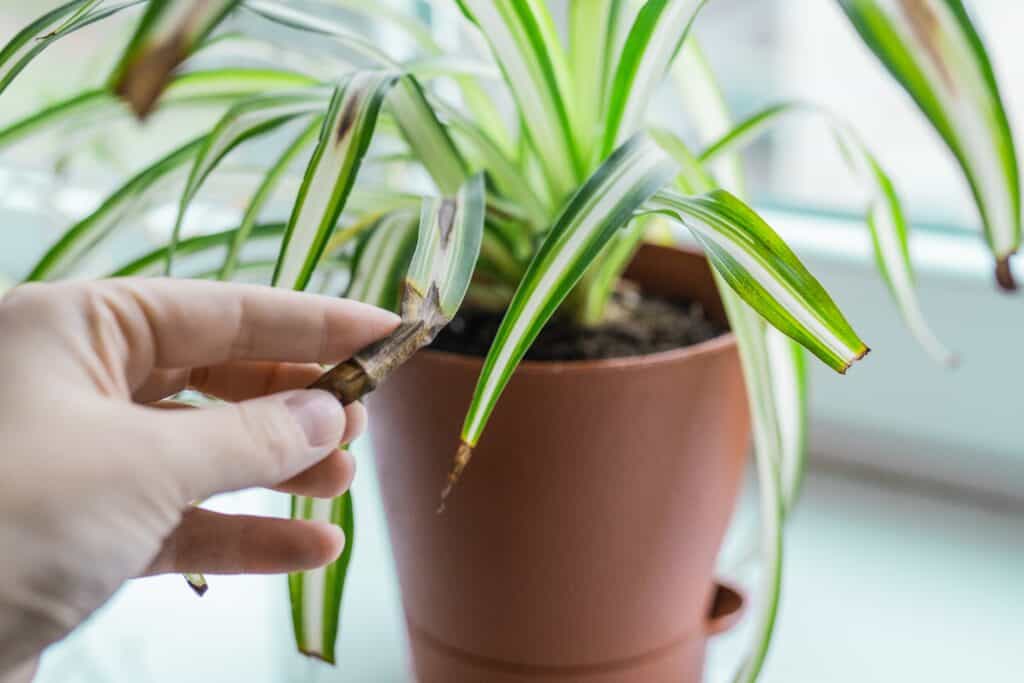 Steht er zu nah an einem Südfenster, besteht die Gefahr, dass die Blätter im Hochsommer verbrennen und braune Flecken an den Rändern aufweisen.