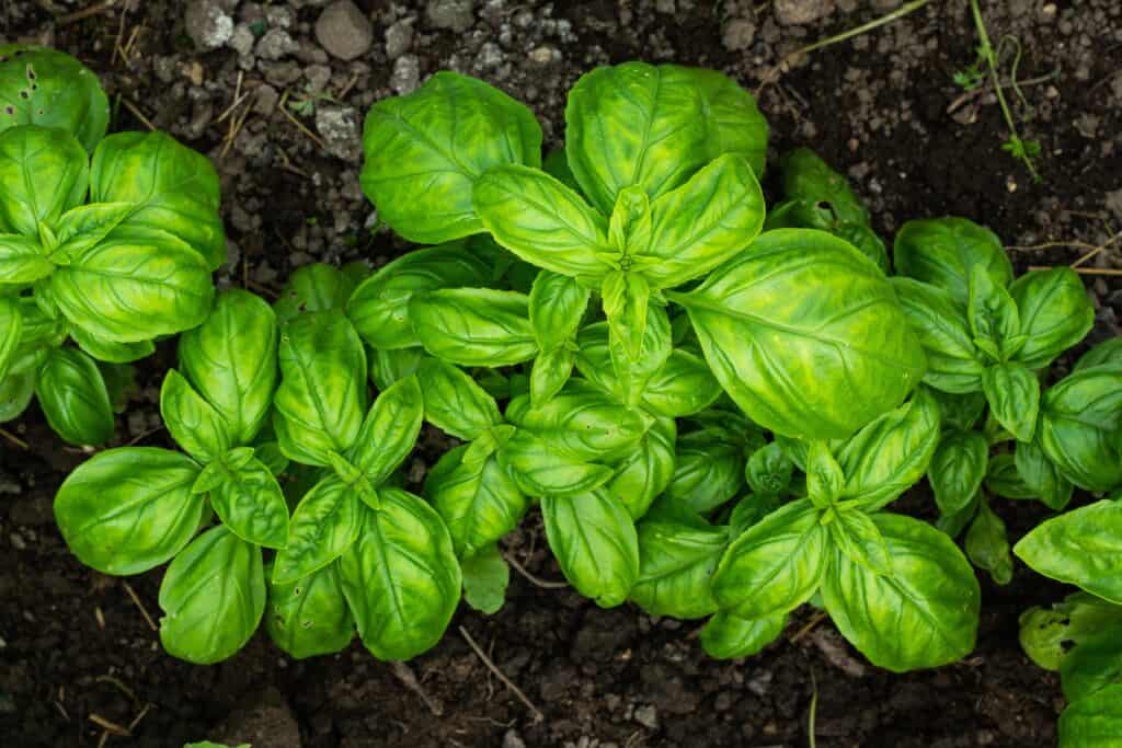 Neben Süßkartoffeln gepflanzt, dient Basilikum als blättriger Wächter, der mit seinen aromatischen Ölen Schädlinge wirksam abwehrt.