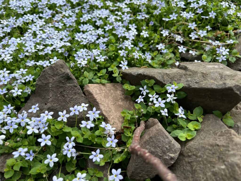 Inmitten von Süßkartoffeln wird der Borretsch zu einem leuchtenden Leuchtturm, der Bienen und Schmetterlinge zu seinen nektarreichen Angeboten lockt.