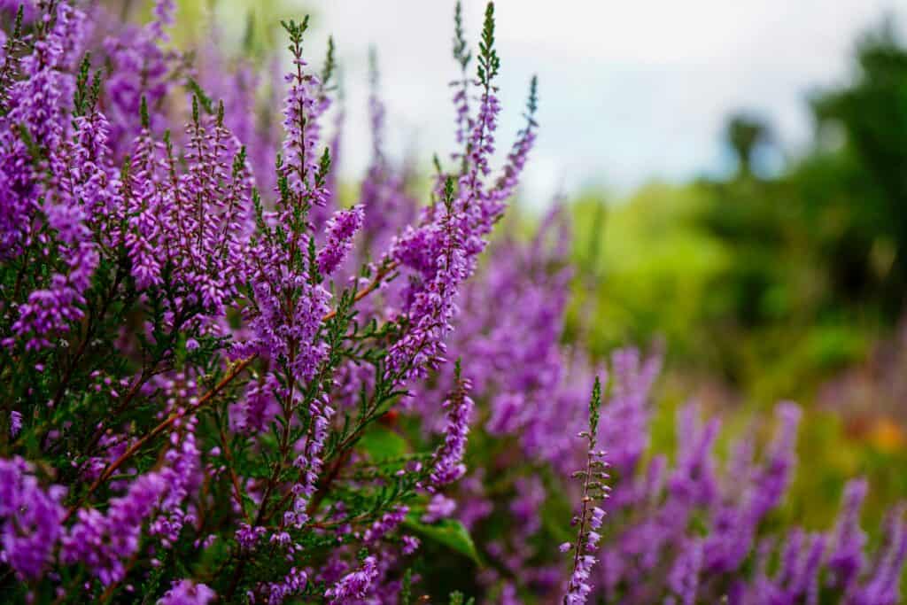 Heidekraut ist eine winterharte Pflanze, die im Winter blüht und ein Farbspektrum von Violett über Rosa bis Weiß bietet.