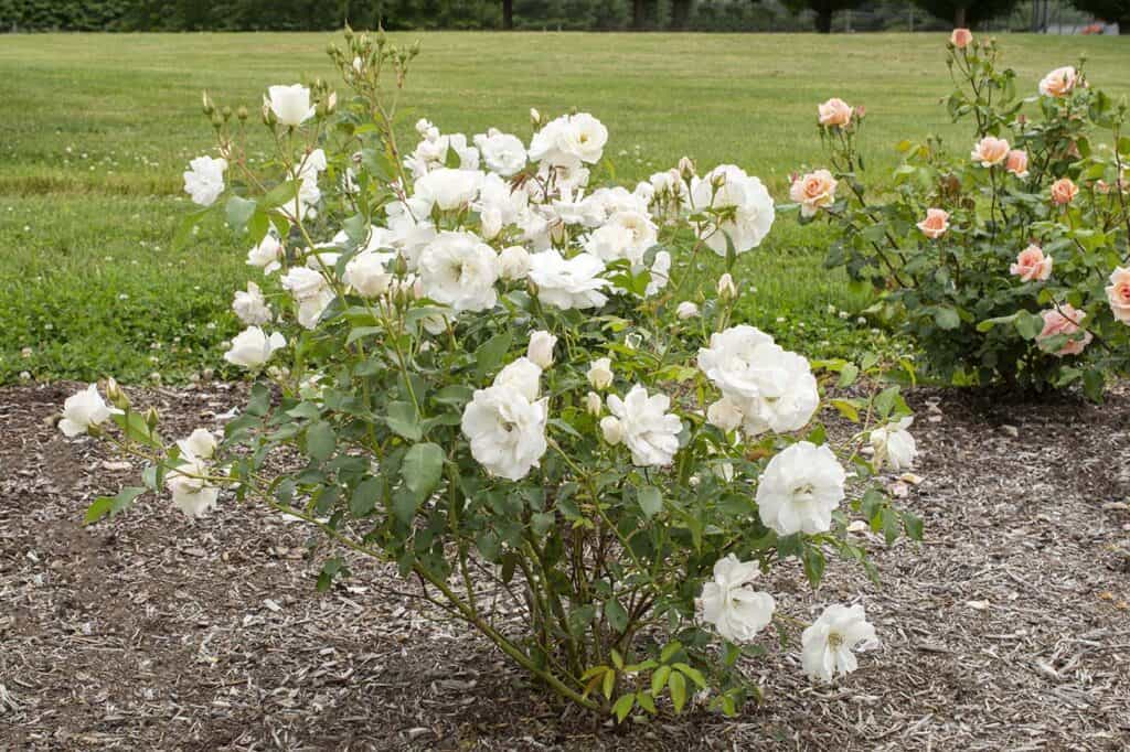 Wenn Sie Ihre Rosensträucher mit einer Schicht organischen Mulchs bedecken, können Sie verhindern, dass die Pilzsporen bei Regen auf die Blätter spritzen.