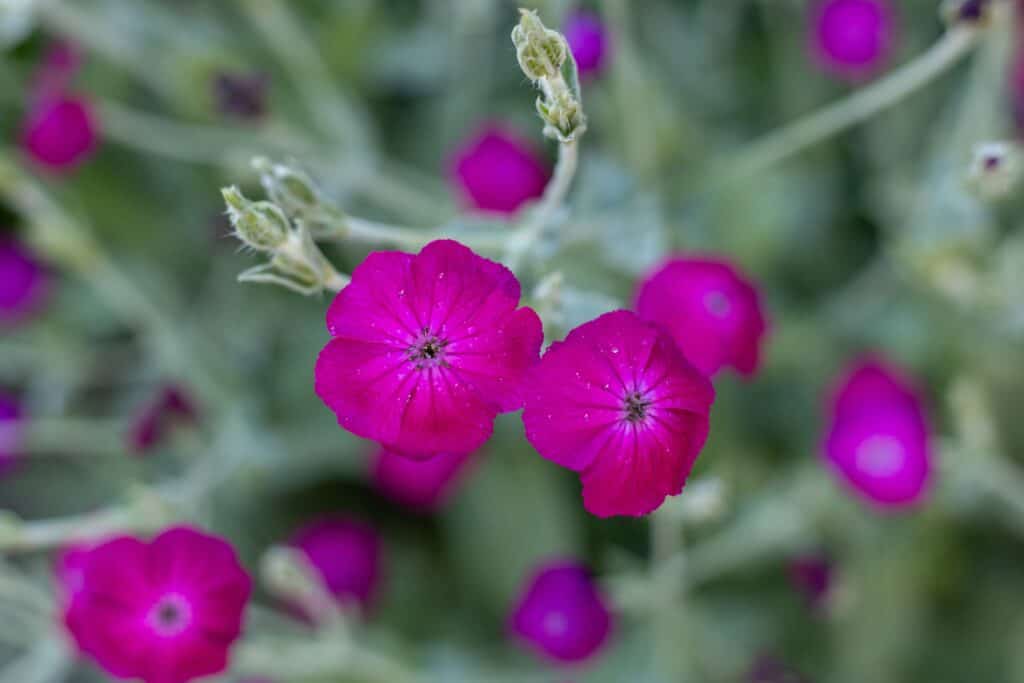 Petunien sind nicht nur schön, sie sind auch ein wirksames Mittel gegen Schädlinge. Ihre Anwesenheit hilft, Blattläuse und Heuschrecken – häufige Feinde der Rosen – in Schach zu halten.