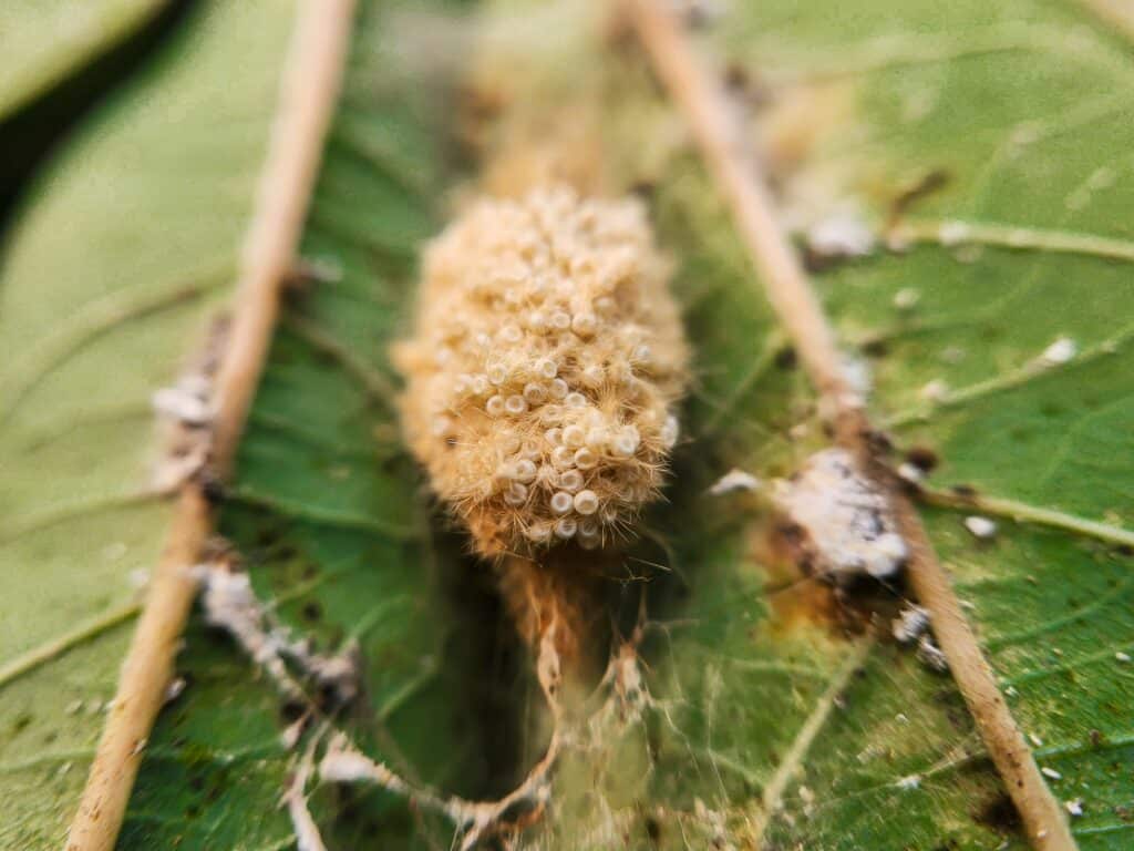 Die Einführung natürlicher Fressfeinde wie Vögel kann dazu beitragen, ihre Populationen zu erhalten. Auch das Besprühen mit Neemöl kann sie abschrecken und weitere Schäden verhindern.
