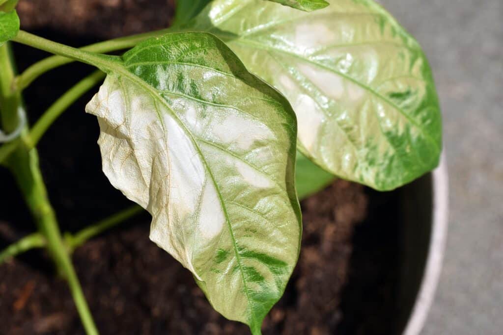 Beugen Sie Sonnenbrand vor, indem Sie die Pflanzen während der stärksten Sonneneinstrahlung schattieren. Sonnenbrand kann zu Blattverfärbungen und -schäden führen und das Wachstum behindern.